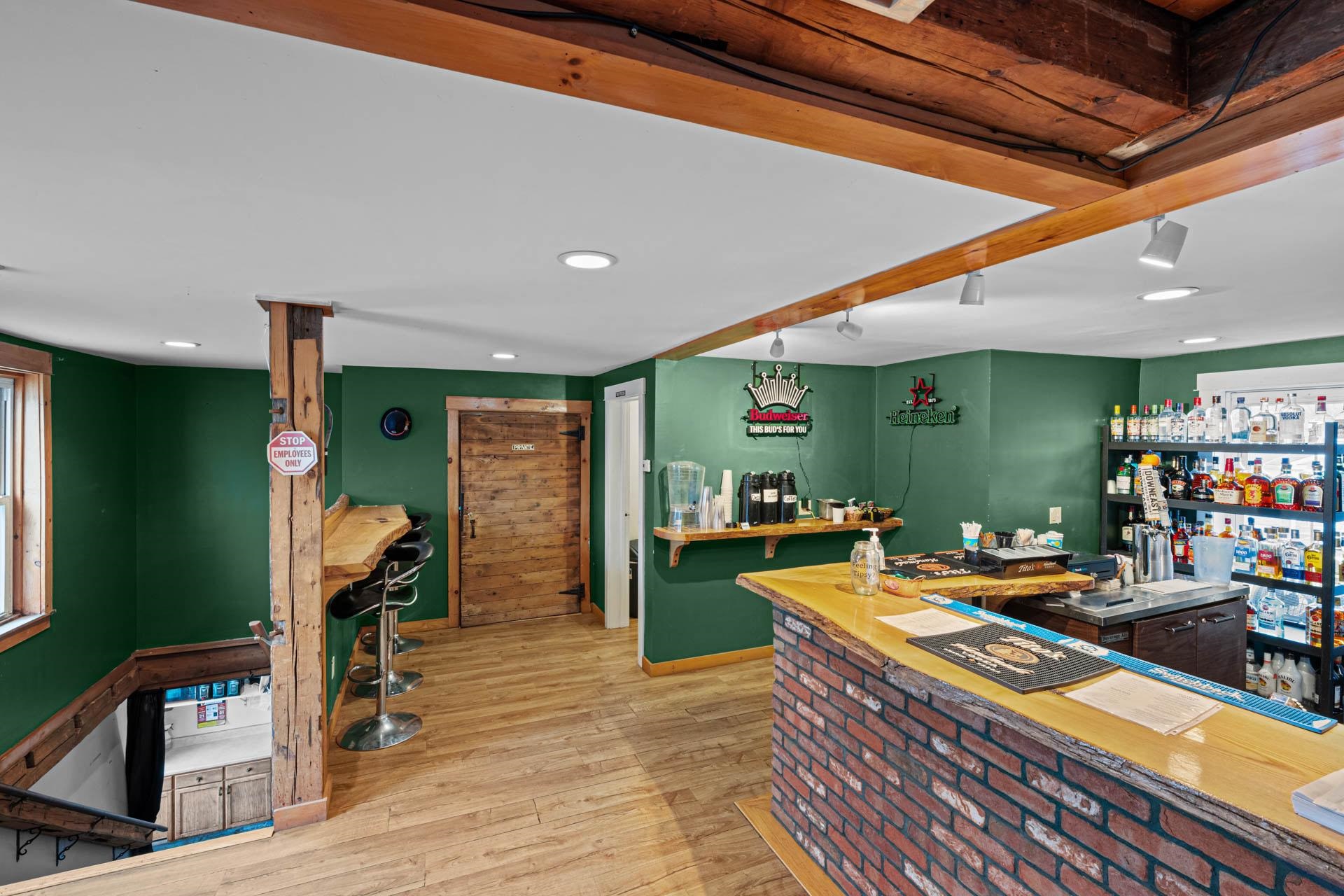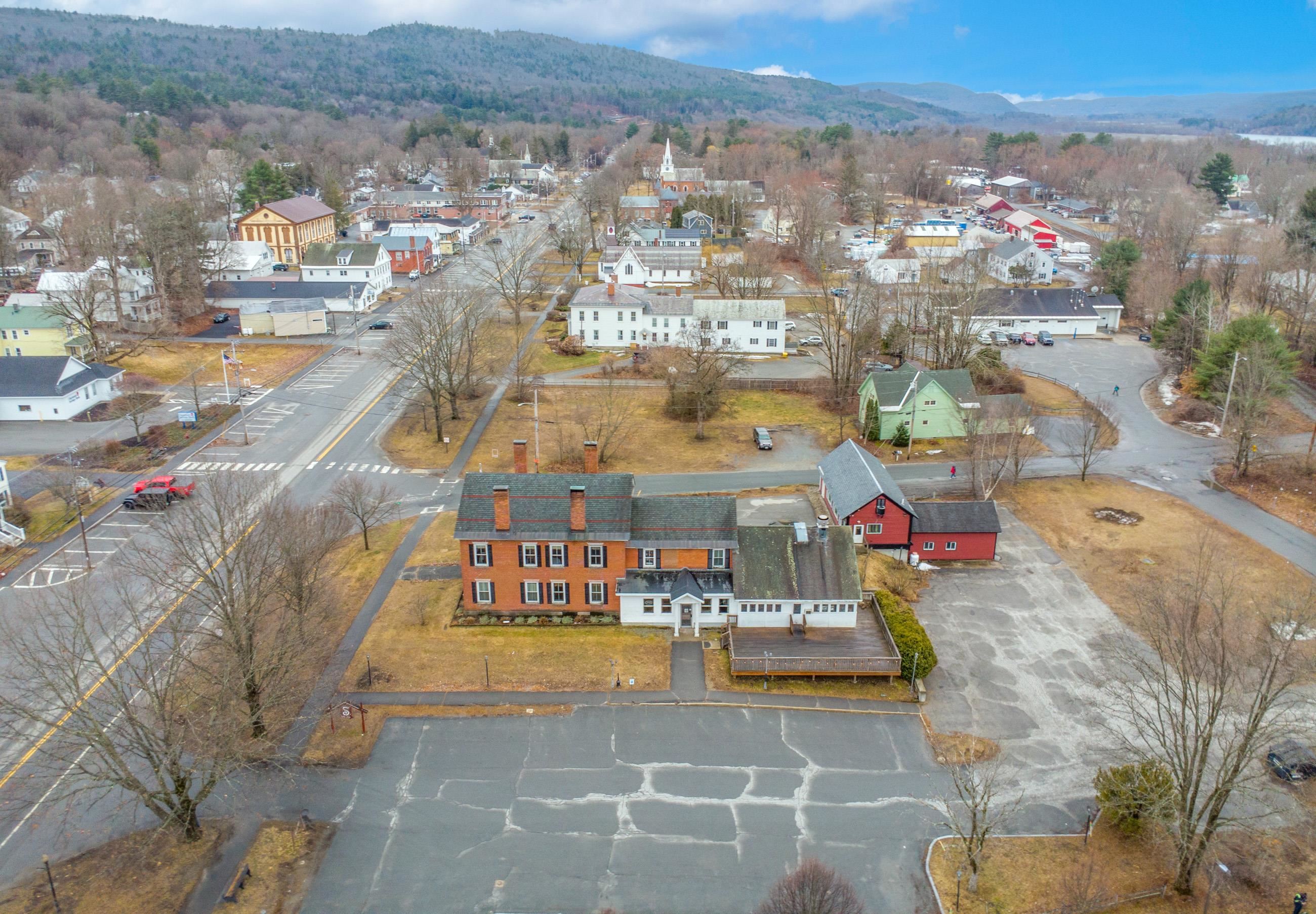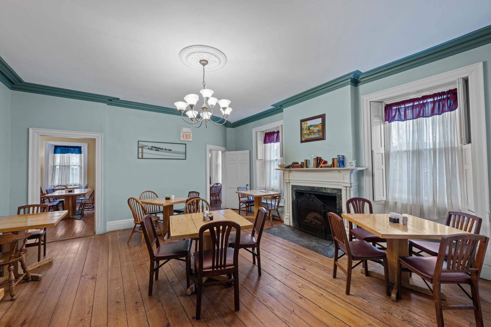 Exceptional opportunity to own a landmark mixed-use property in the heart of Charlestown's historic town center. Originally built in 1834, this beautifully restored property blends timeless character with modern upgrades, featuring a fully operational restaurant, event space, and additional income-producing units. The main building is home to a well-established restaurant and bar with seating for 70+ guests, plus seasonal outdoor deck seating. Rich in historic charm, the space showcases original curved walls, preserved mantels, crown molding, ceiling medallions, and a striking eastern winding staircase, complemented by exposed post-and-beam elements and warm wood flooring. The main level includes three public restrooms, while the upper level offers a private event space with its own bar (upgraded in 2020) and dining area. Additional storage is available in the full basement and walk-up attic. Major system upgrades include a 50-year asphalt roof (2011), 9-zone radiant heat with supplemental wall heaters (2011), upgraded 225-amp electrical service (2011), refinished floors (2011), a Bosch Buderus furnace, and a tankless hot water system (2023). The property also benefits from professionally installed spray-foam insulation in the walls and attic, significantly improving energy efficiency and reducing heating costs. The detached outbuilding, renovated in 2022, features a modern oversized studio apartment currently rented at $1,100/month with a stackable washer/dryer, along with a lower-level office/commercial/storage space, offering added flexibility and income potential. With a prime Main Street location and excellent visibility, this property offers a rare opportunity for investors or owner-operators looking for an exceptional asset with multiple revenue streams.