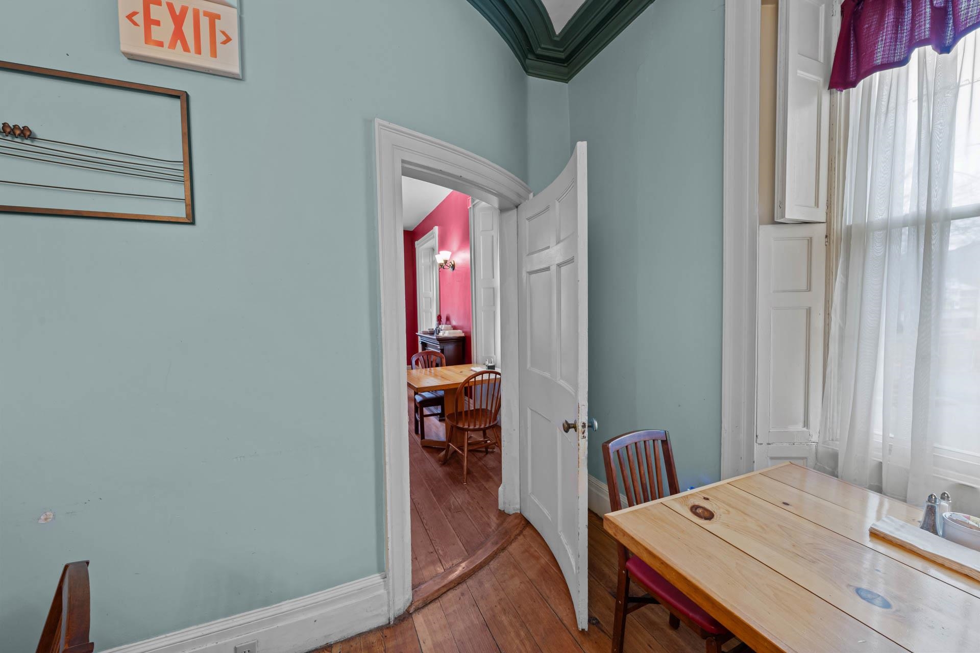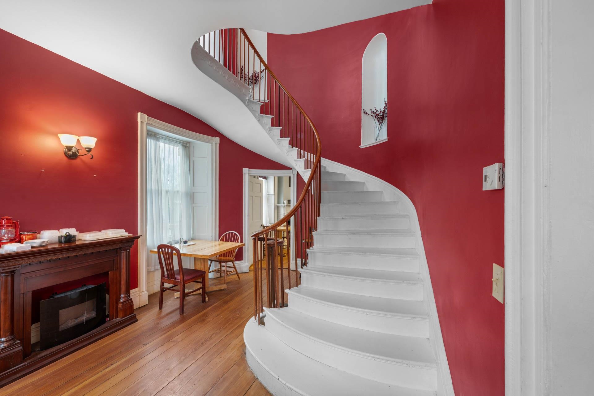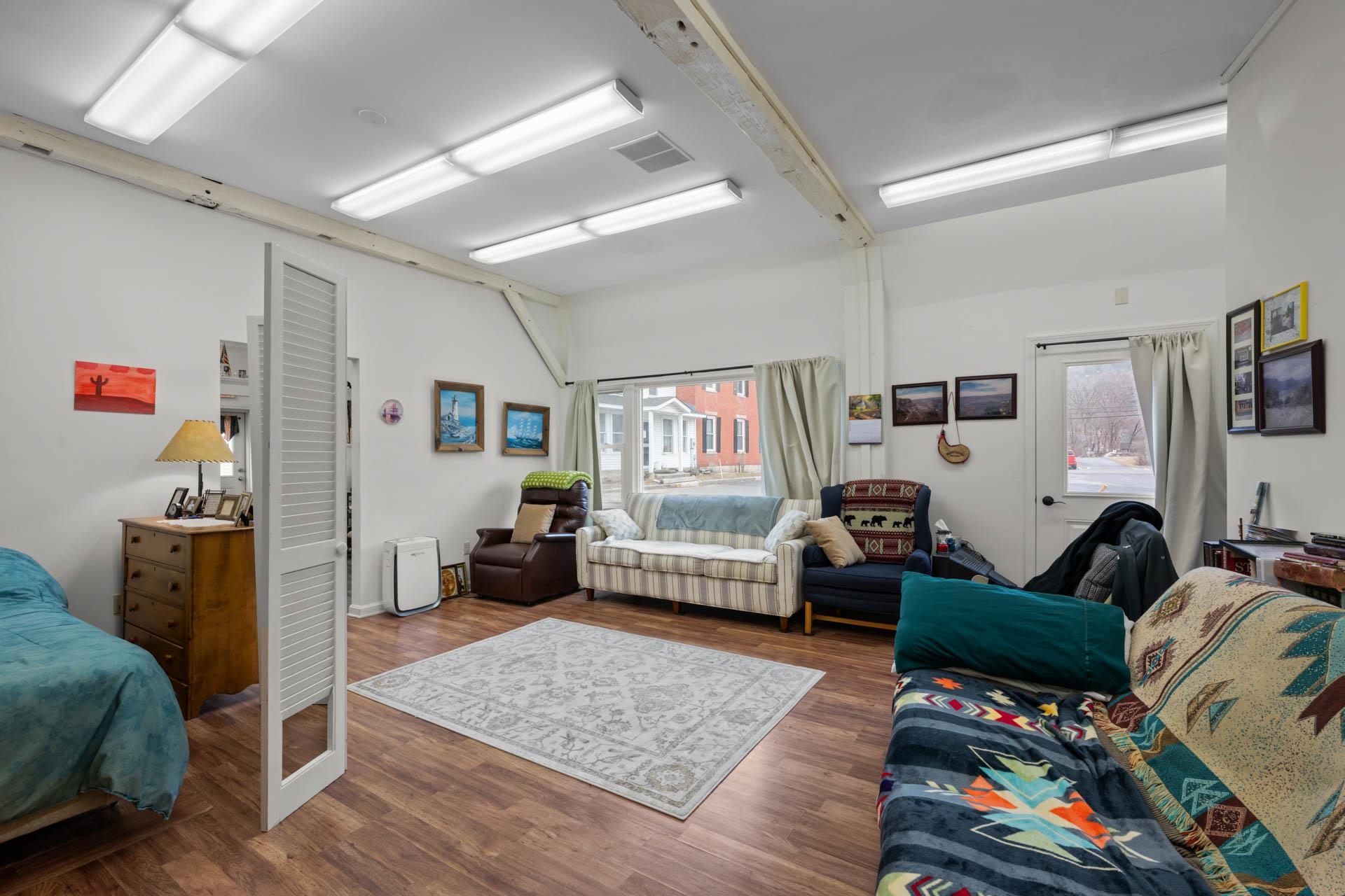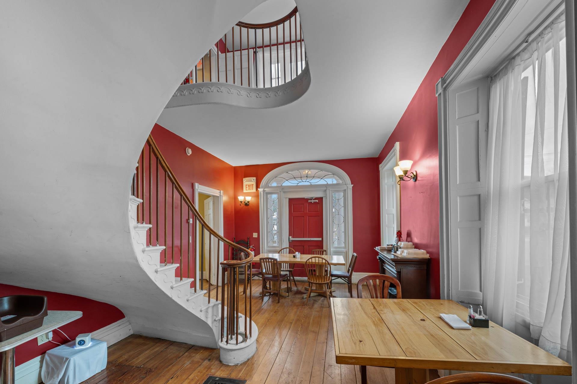 Exceptional opportunity to own a landmark mixed-use property in the heart of Charlestown's historic town center. Originally built in 1834, this beautifully restored property blends timeless character with modern upgrades, featuring a fully operational restaurant, event space, and additional income-producing units. The main building is home to a well-established restaurant and bar with seating for 70+ guests, plus seasonal outdoor deck seating. Rich in historic charm, the space showcases original curved walls, preserved mantels, crown molding, ceiling medallions, and a striking eastern winding staircase, complemented by exposed post-and-beam elements and warm wood flooring. The main level includes three public restrooms, while the upper level offers a private event space with its own bar (upgraded in 2020) and dining area. Additional storage is available in the full basement and walk-up attic. Major system upgrades include a 50-year asphalt roof (2011), 9-zone radiant heat with supplemental wall heaters (2011), upgraded 225-amp electrical service (2011), refinished floors (2011), a Bosch Buderus furnace, and a tankless hot water system (2023). The property also benefits from professionally installed spray-foam insulation in the walls and attic, significantly improving energy efficiency and reducing heating costs. The detached outbuilding, renovated in 2022, features a modern oversized studio apartment currently rented at $1,100/month with a stackable washer/dryer, along with a lower-level office/commercial/storage space, offering added flexibility and income potential. With a prime Main Street location and excellent visibility, this property offers a rare opportunity for investors or owner-operators looking for an exceptional asset with multiple revenue streams.